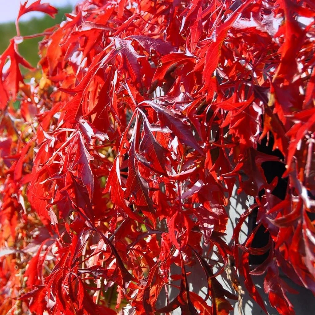 Le Parthenocissus Kirigami, élégante mais somme toute assez discrète au sein de la verdure ambiante, transfigure n’importe quel support en automne qu’elle couvre d’un fastueux manteau d’un rouge écarlate presque obsédant. Cette vigne vierge est rustique jusqu’à -25°C, elle pousse en sol profond, plutôt argileux, en situation ombragée, mi-ombragée ou même ensoleillée. Une fois bien établie, la plante supporte très bien la sécheresse, ce qui permet de l’installer aux limites d’un grand jardin, dans un endroit un peu sauvage, sur un talus ombragé qui n’est jamais arrosé, même dans le Midi. La taille sans contrainte en toute saison maintient la plante dans son espace. Généreux, ample et rutilant, le Parthenocissus quinquefolia Kirigami est une grimpante facile à vivre, ornementale, mais aussi très utile pour couvrir les murs et façades en toutes régions, en raison de ses propriétés de régulateur thermique pour les bâtiments.